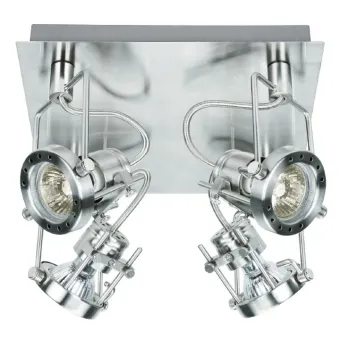 Plafonnier avec 4 lampes halogènes incluses chacune 42 watts et 2700 kelvin, raccord GU10. Structure en métal chromé...