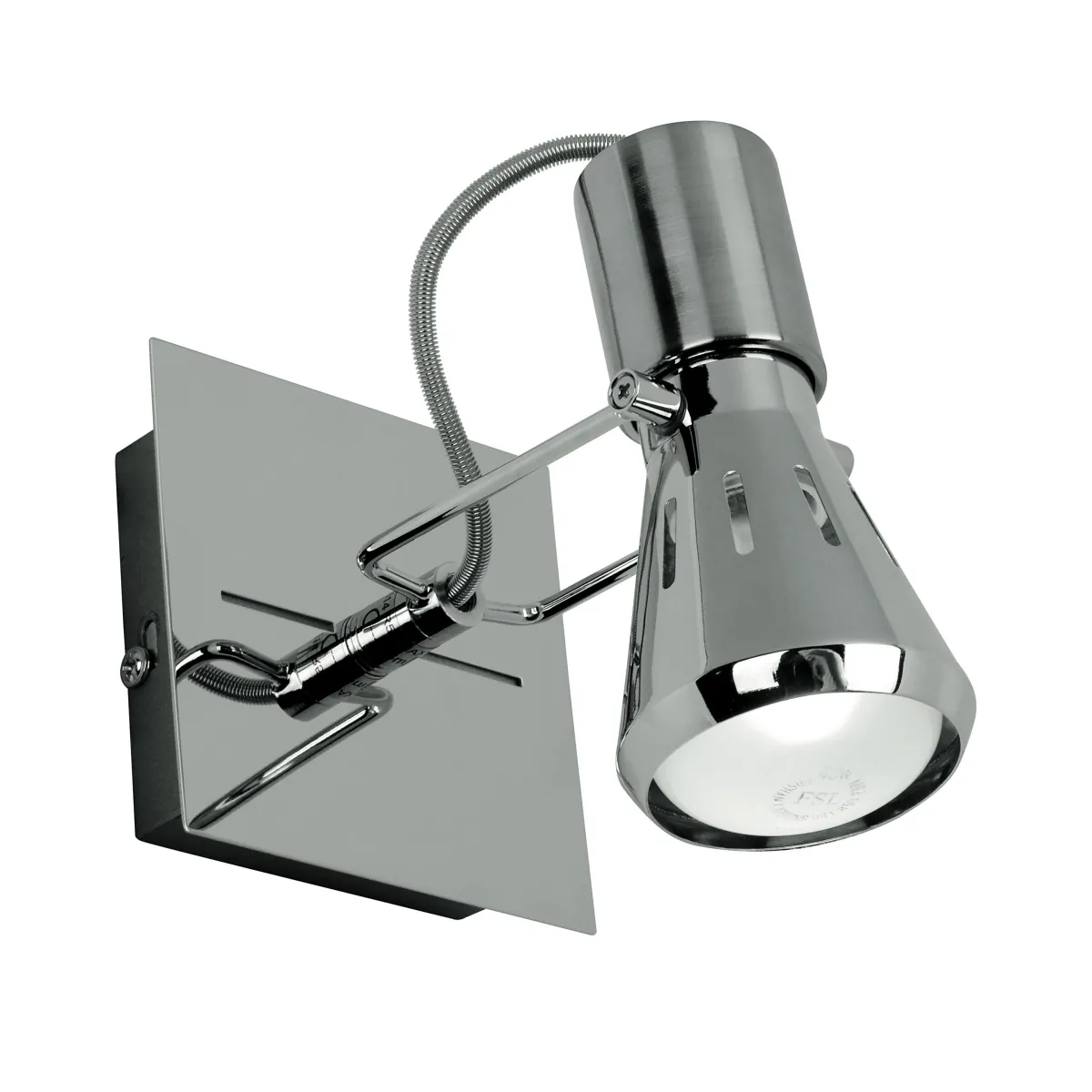 Applique avec structure en métal chromé, 15 cm de haut et 13 cm de large, avec une lumière. Ampoule halogène E14 de 40 watts non incluse.