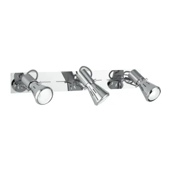 Applique avec 3 lampes halogènes chacune de 40 watts, raccord E14, non inclus. Structure en métal chromé, 15 cm de haut et 45 cm de large.