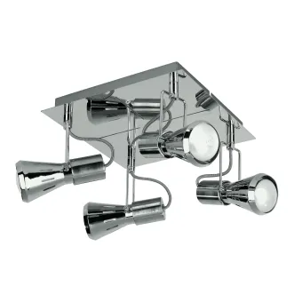 Plafonnier carré, 24x24 cm, avec structure en métal chromé, avec 4 lumières. Ampoules halogènes de 40 watts chacune, douille E14, non incluses.