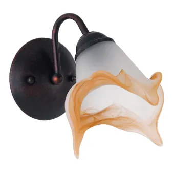Applique con paralumi in vetro bianchi e arancio, a una luce, struttura in metallo color ruggine. Lampadina alogena da 40 watt, attacco E14, non incluse. Applique con 1 attacco E14 da 40 watt Installabile a Muro. Misura in cm HxL 17x26. Lampadine incluse si/no: No. Compatibile con lampadine led o alogene. Colore: Ruggine Secodo colore: Arancio.