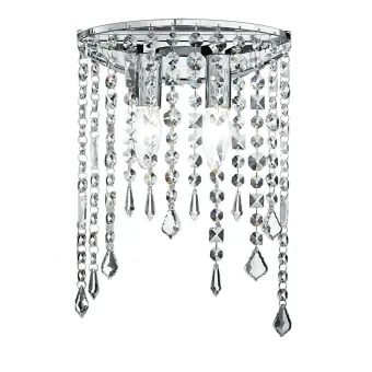 Applique in metallo dalla forma semplice, impreziosita da pendenti cristalli K9. Grazie ai cristalli la crea giochi di luce nell'ambiente, donando un tocco di eleganza. Due lampadine alogene non incluse da 40 watt, attacco E14