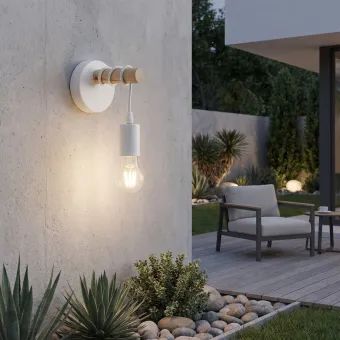 Applique moderna bianca da interno per parete struttura cilindrica in legno e metallo 1XE27