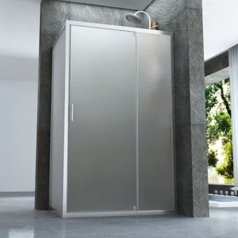 Box doccia a due lati con porta con porta battente verso l'esterno o interno (in base a come viene montana la guarnizione) dotata di chiusura magnetica per una perfetta tenuta ermetica. Dotata di guarnizione sotto vetro in battuta sul profilo inferiore per una tenuta perfetta. Altezza 190cm cristallo opaco stampato 6mm. Box doccia reversibile, installabile destro o sinistro.