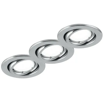 Kit tre faretti a incasso tondi, diametro 10 cm, con struttura in metallo cromo. Ghiera orientabile fino a 15° ....