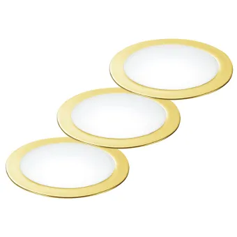 Kit tre faretti a incasso tondi, diametro di 7 cm, in alluminio oro satinato. Installabili su soffitto...