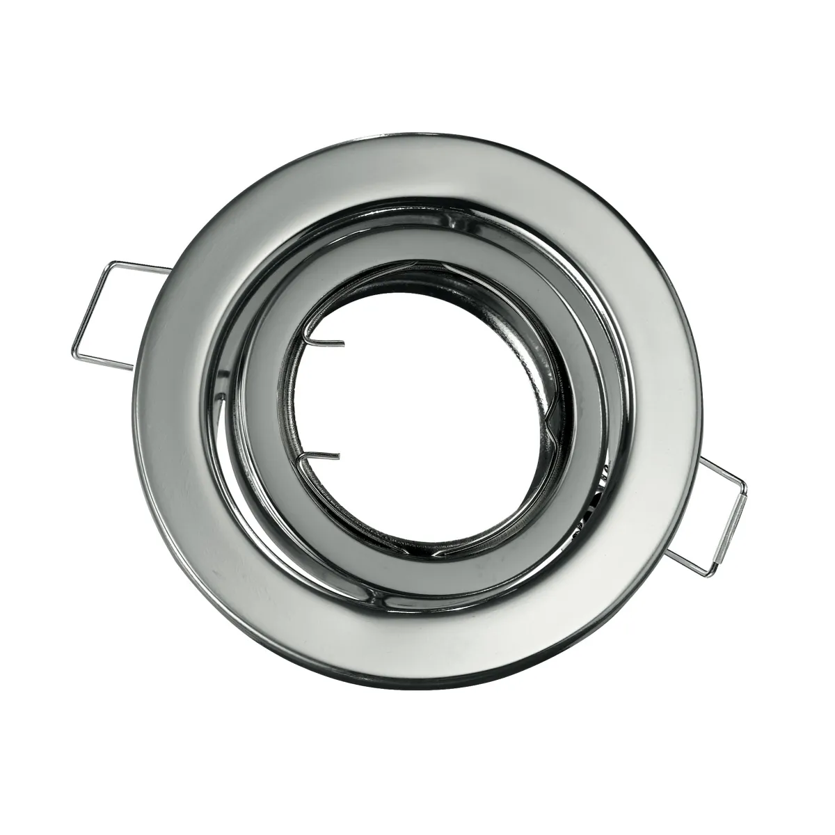 Ghiera cromata per faretto a incasso orientabile, attacco MR16 o GU10. Disponibile anche nei colori bianco, bronzo, nickel e oro. Ghiera per faretto orientabile di colore: Cromo.