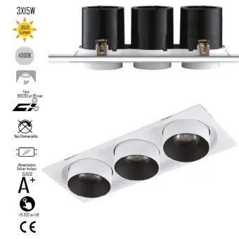 Lampada da incasso orientabile bianco e interno nero LED COB 4000K3x15W