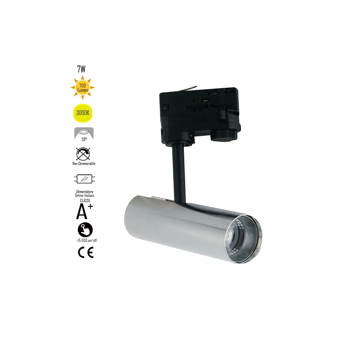 Faretto per binario orientabile a led in alluminio cromo A+ Luce calda 7 W