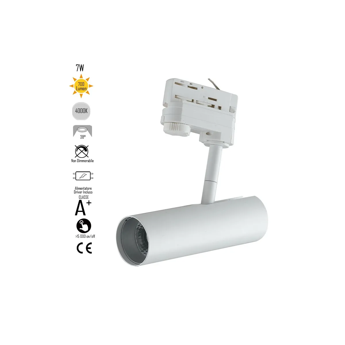 Proiettore Binario Trifase Rocket Led Bianco 7W 700Lm 4000KLED-ROCKET-7M BCO Faretto binario Bianco Led