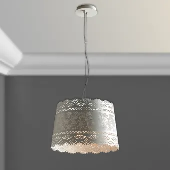 Lampadario Sospeso paralume Forato Pizzo Bianco Opaco Moderno E14