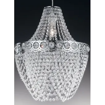 Lampadario sopeso con struttura in metallo cromato, decoro a cerchi e pendenti di cristallo in acrilico, a una luce. Lampadina alogena da 60 watt, attacco E27, non inclusa. Lampadario a sospensione con 1 attacco E27 da 60 watt Installabile a Soffitto. Misura in cm HxL 120x40. Lampadine incluse si/no: No. Compatibile con lampadine led o alogene. Colore: Cristallo.