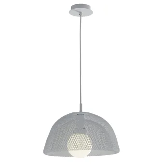 Lampadario a sospensione in metallo bianco con decoro a rete, forma circolare di diametro 37 cm. Una lampadina alogena E27 da 60 watt, non inclusa. Lampadario a sospensione con 1 attacco E27 da 60 watt Installabile a Soffitto. Misura in cm HxL 150x37. Lampadine incluse si/no: No. Compatibile con lampadine led o alogene. Colore: Bianco.