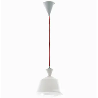- Design moderno, struttura in vetro opale bianco con cavo elettrico in tessuto rosso.