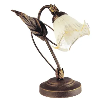 Lampada da Tavolo Floreale Decoro a Mano Metallo Ramato Diffusore Vetro Classica E14