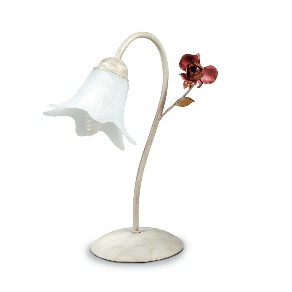 Lumetto Rose Bianco Rosso Metallo diffusore Vetro Lampada da Tavolo Classica E14