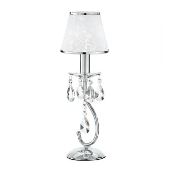 Lampada da tavolo o comodino in metallo con paralume in polivinilico bianco decorato a fiori glitterati. Grazie ai pendenti cristalli K9 dona lucentezza e eleganza a qualsiasi stanza della casa. Lumetto Boeme ideale per dare un tocco classico all'arredamento. Lampadina alogena non inclusa da 40 watt, attacco E14. Scopri tutta la linea Boeme, Clicca quà.