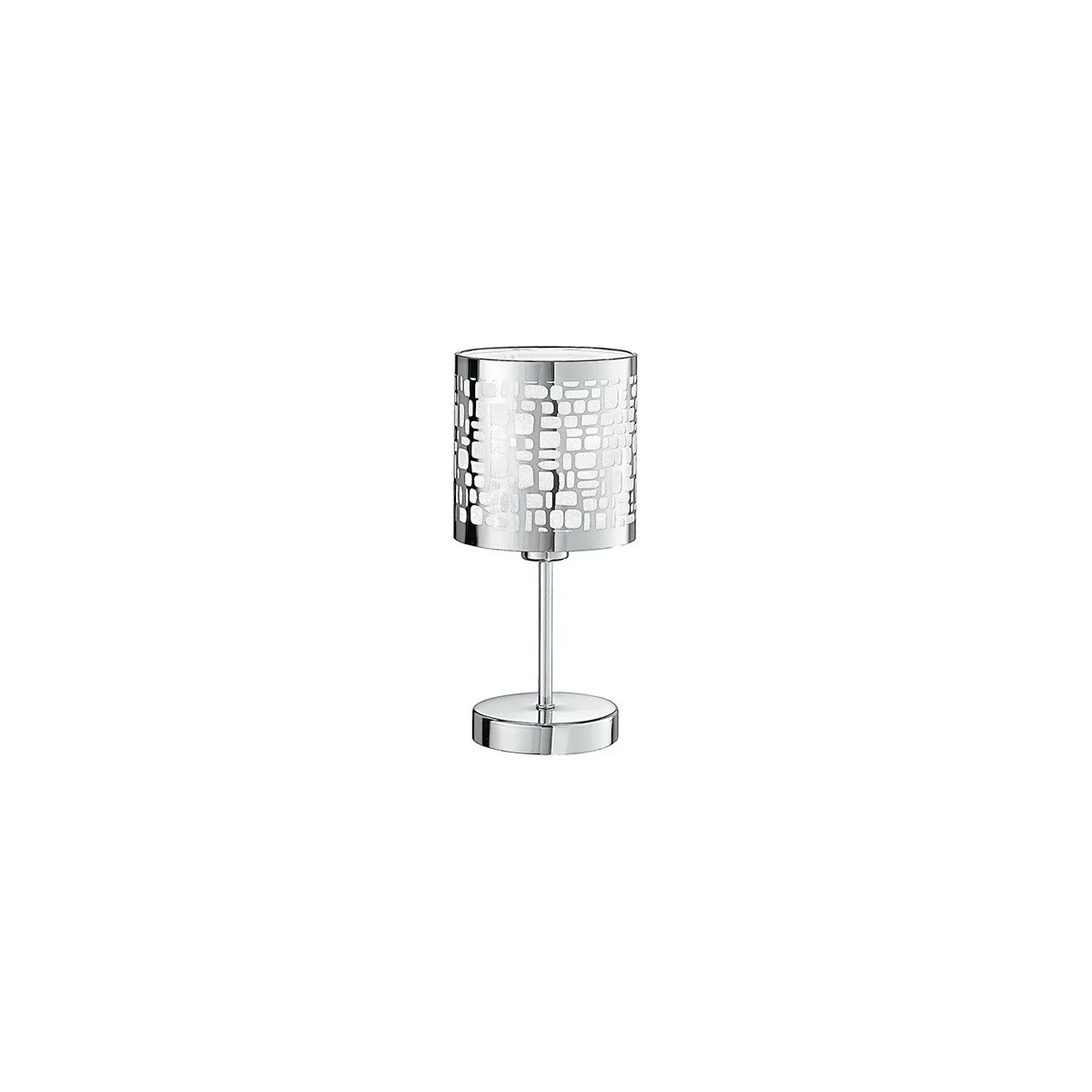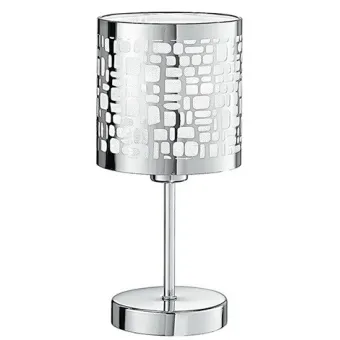 Lumetto a una luce con struttura in acciaio e paralume a decori geometrici intagliati. Ideale pe illuminare la zona notte. Lampadina alogena non inclusa da 40 watt, attacco E14. Lumetto Lampada da tavolo Misura in cm HxL 19x13. Lampadine incluse si/no: No . Pu portare 1 lampadina E14 da Max 40 watt. Colore: Cromo.