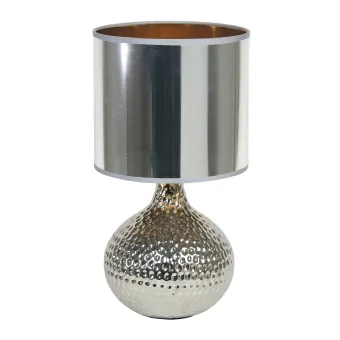 Lampada da tavolo , alta 35 cm e larga 22 cm, argento con fusto in ceramica e paralume in pvc. Lume che...