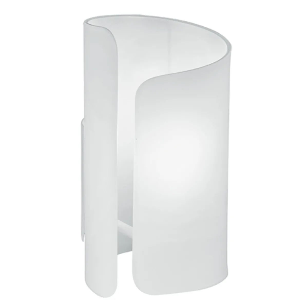 Lampada da tavolo 60W E27 bianco CREATE. Design moderno, struttura in alluminio e diffusore ricurvo in vetro.