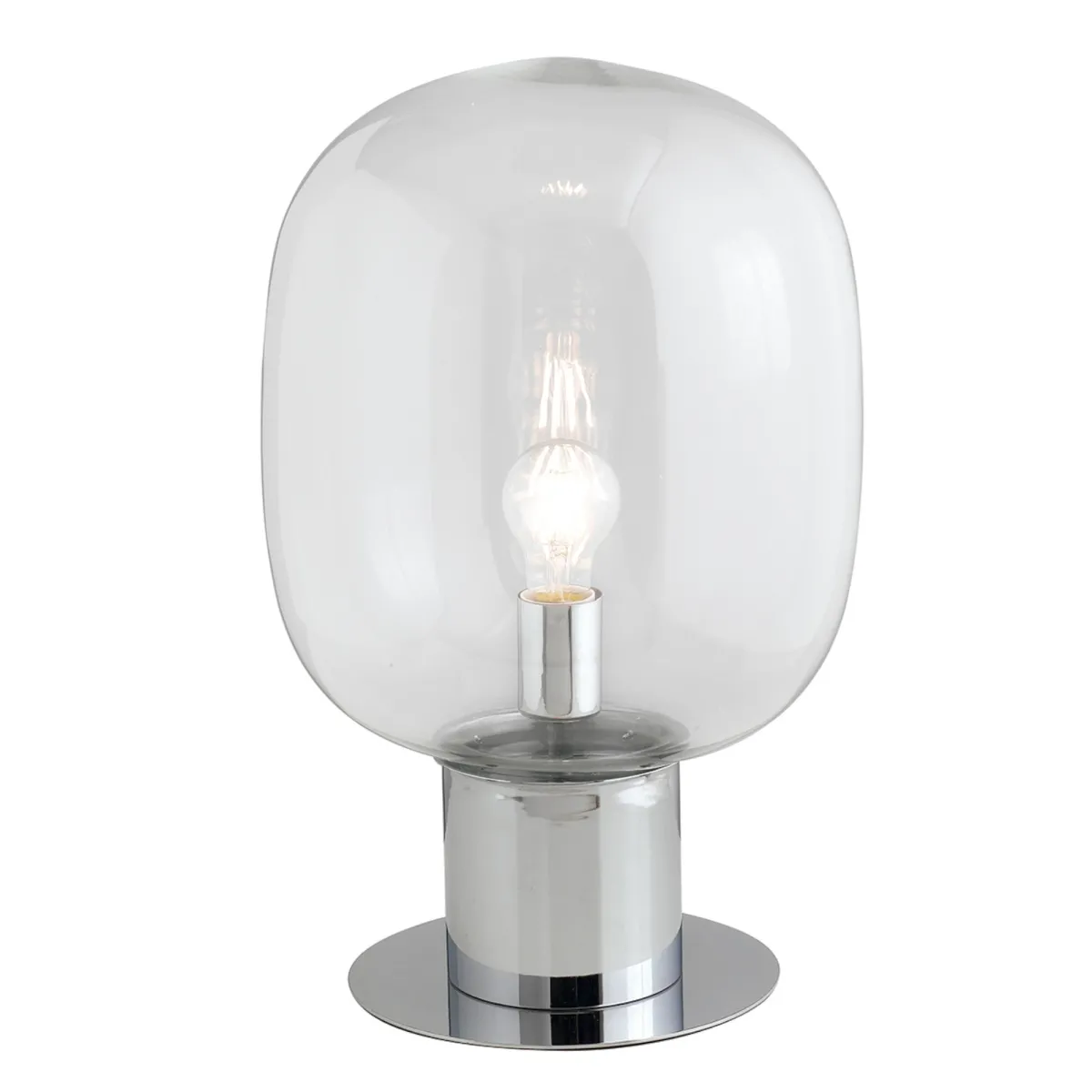 Lampada da tavolo 25W E27 diametro 18cm cromo GILDA. Punto luce moderno dalla forma cilindrica, in vetro e metallo.