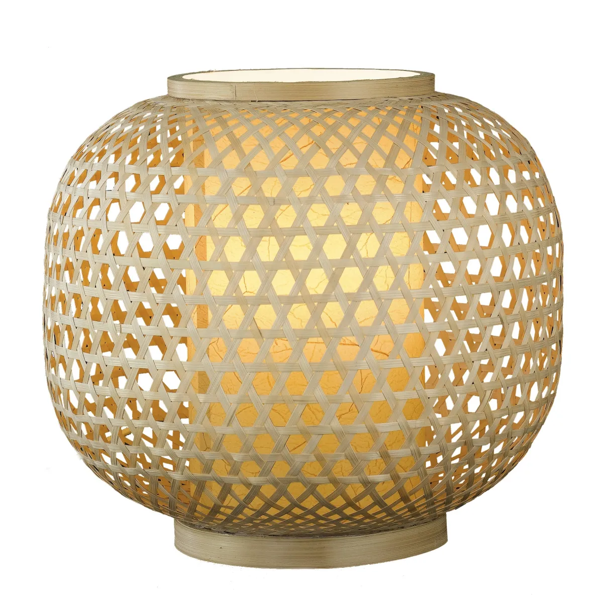 Lume Tondo Bambù Naturale Intrecciato Lampada da Tavolo Etnica E27