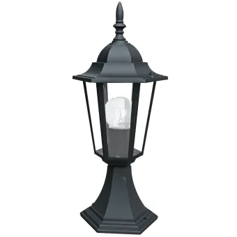 Dalla linea di accessori per l'illuminazione da esterno, lanterna da terra per esterno serie London. Una linea di accessori realizzati in puro stile liberty per rivivere ogni giorno atmosfere romantiche di epoca vittoriana. Ideale come complemento di arredo per giardini pubblici, aree private o condomini. Colore nero. Lampadina non inclusa.
