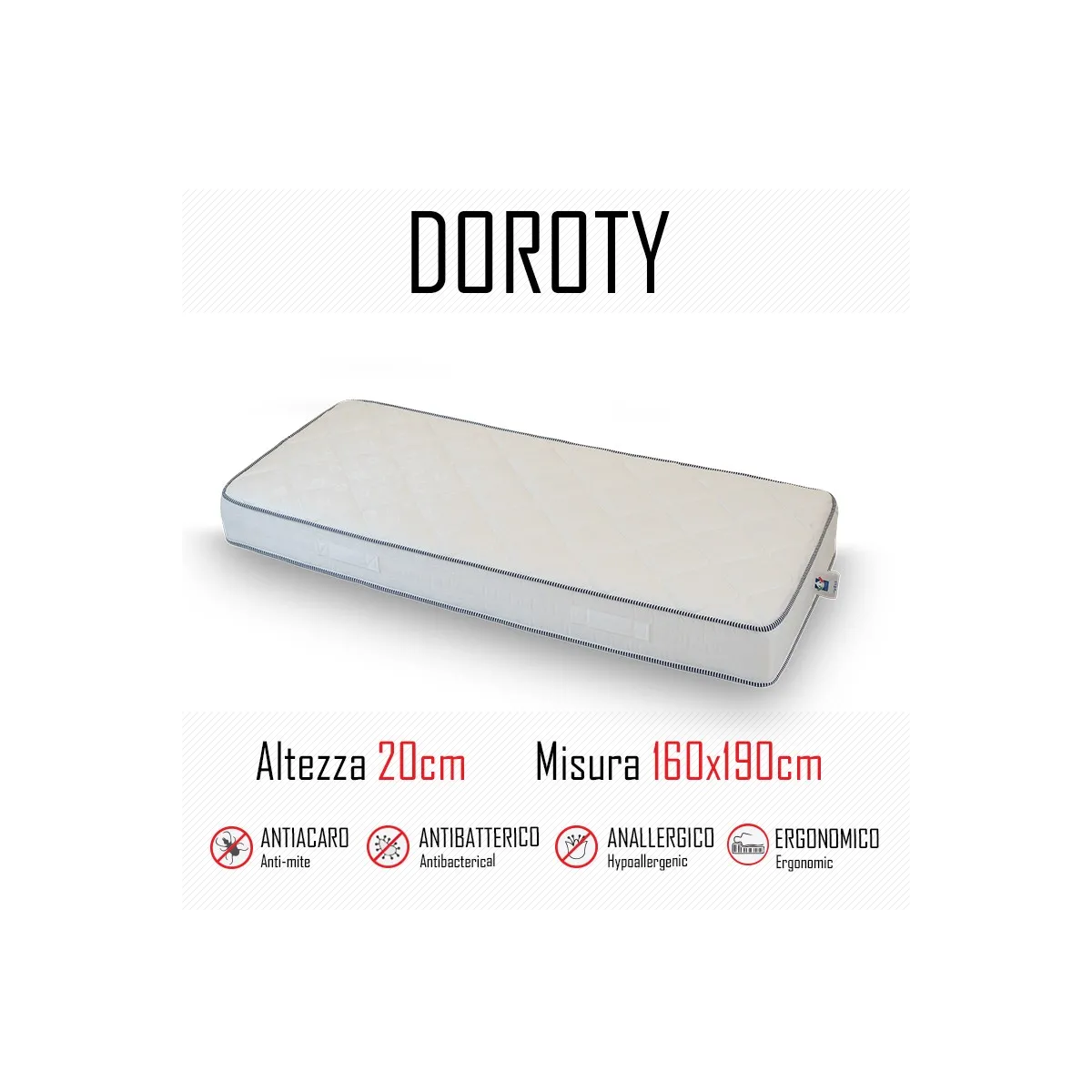 Materasso Doroty costituito da una lastra in poliuretano espanso alto 18 cm,indeformabile e ad alta densit assicura un supporto compatto e allo stesso tempo elastico.