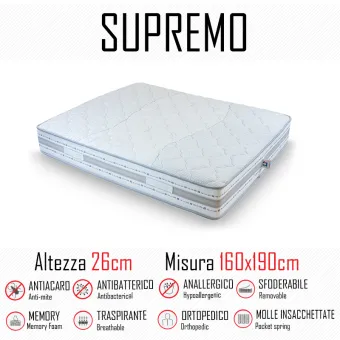 Materasso Supremo 160x190 a molle indipendenti e memory alto 26cm