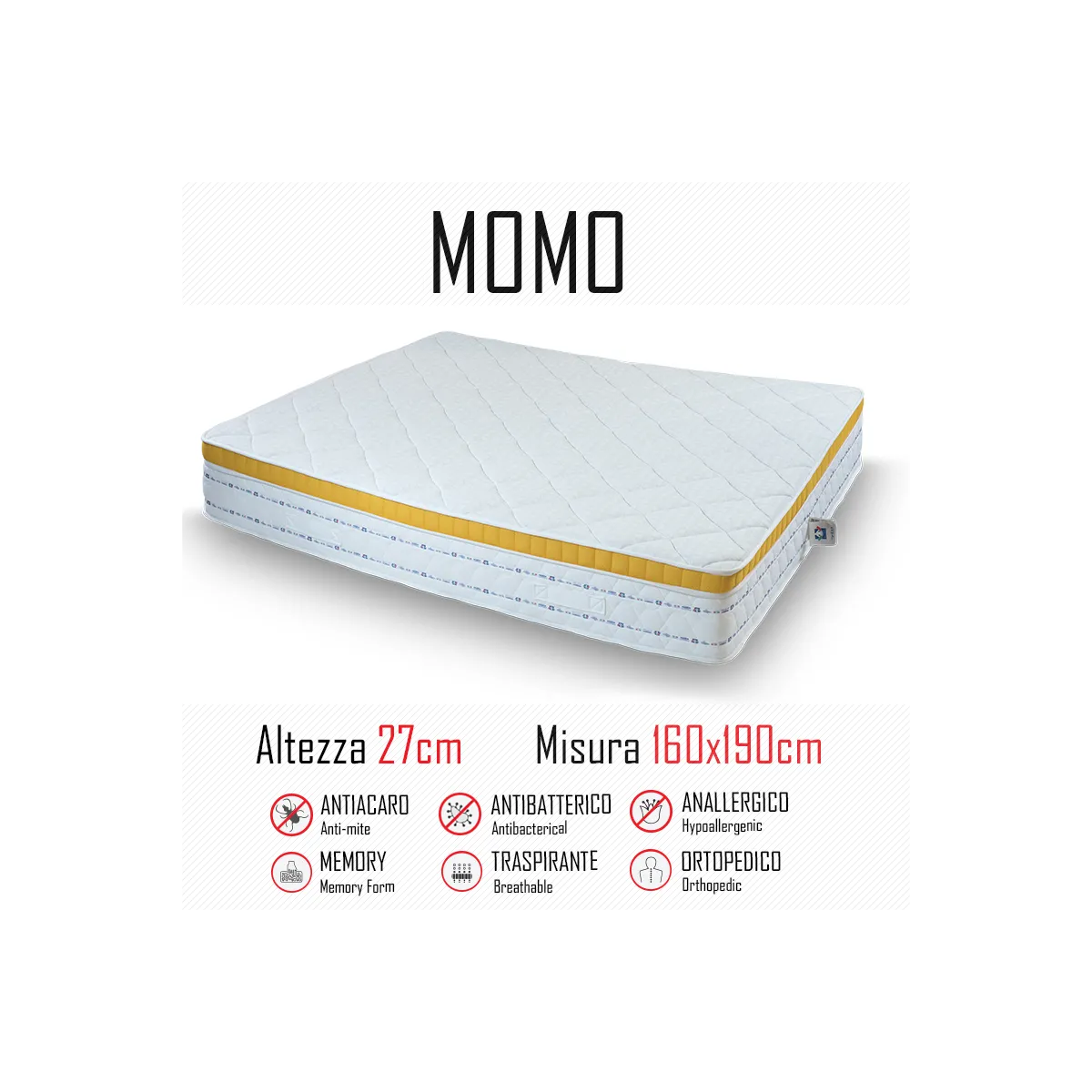 Materasso Momo Composto da un pillow top in Memory Foam, che gli consentono di adattarsi a tutte le posture del corpo garantendo una piacevole sensazione di rilassamento ad ogni riposo.
