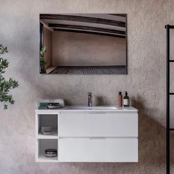 Mobile bagno sospeso bianco porcellana con vani a giorno A SINISTRA 100 120cm ARMONY