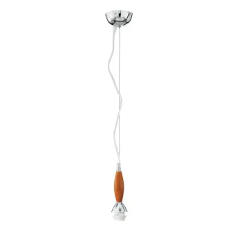 Sospensione a filo in acciaio cromato con particolare in legno. Dotata di porta lampada, attacco E27. Vedi anche nella versione tutta cromata.