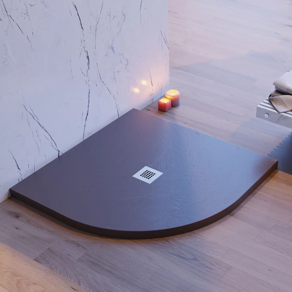 Piatto doccia semicircolare effetto pietra marrone ultra slim, misure 80x80, 90x90, 100x100. Spessore 3cm, reversibile, rifinito su quattro lati