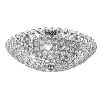 Plafoniera cromata a 4 luci alogene ciascuna da 28 watt, attacco G9, incluse. Struttura circolare, diametro 32 cm, in metallo con decoro in cristalli K9 tondi. Disponibile anche nella versione con 5 luci. Plafoniera Alogena con 4 lampadine G9 da 28 watt Installabile a Muro o soffitto. Misura in cm HxL 11x32. Lampadine incluse si/no: No da 3500 Kelvin. Colore: Cristallo. Secondo colore: Cromo.