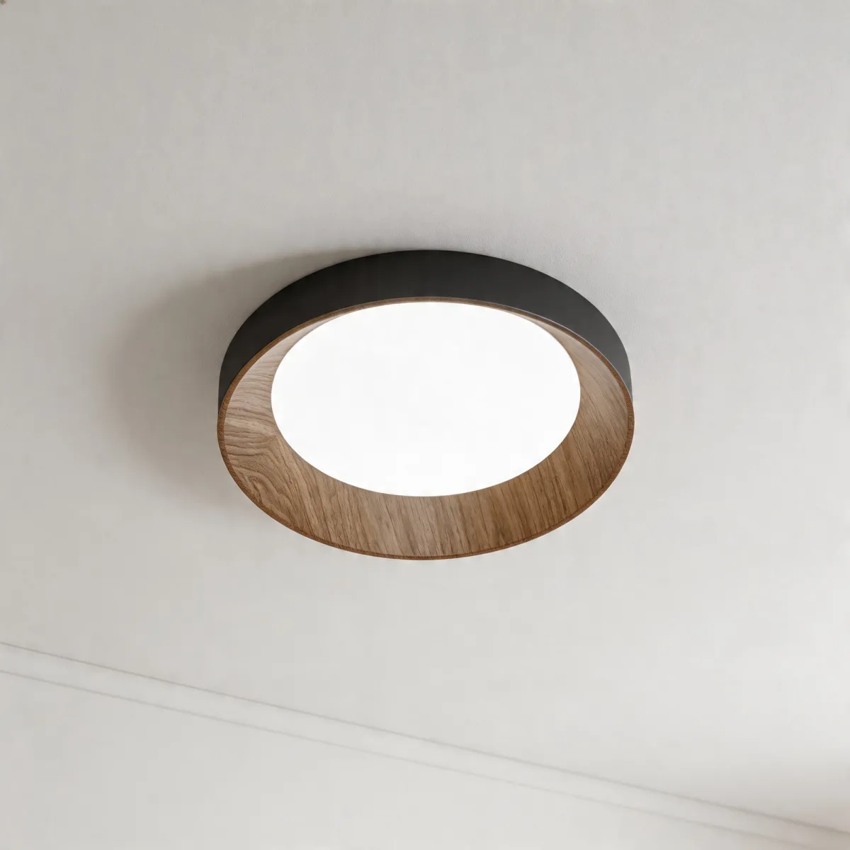 La plafoniera fonde estetica e praticità. Il suo bordo in metallo nero o bianco, con interno dall'effetto legno, abbraccia un diffusore in ACRILICO per una luce diffusa e avvolgente. Disponibile in forma circolare e due dimensioni, offre una temperatura regolabile tramite un comodo interruttore interno.