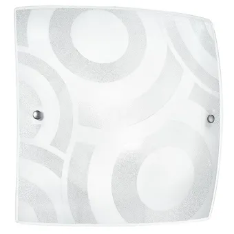 Plafoniera Vetro Graniglia Quadrata decoro Cerchi Bianchi Moderna Soffitto Parete E27
