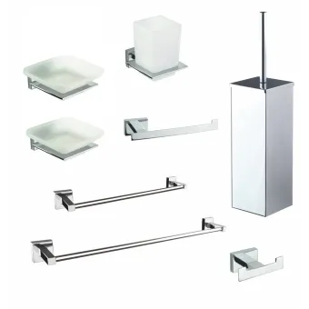 Il set di accessori per il bagno cromato si adatta con facilità e disinvoltura al tuo bagno moderno. Le linee squadrate sono più attuali che mai e il set Zurigo non può che essere la soluzione per avere un bagno allo stesso tempo contemporaneo e lussuoso.